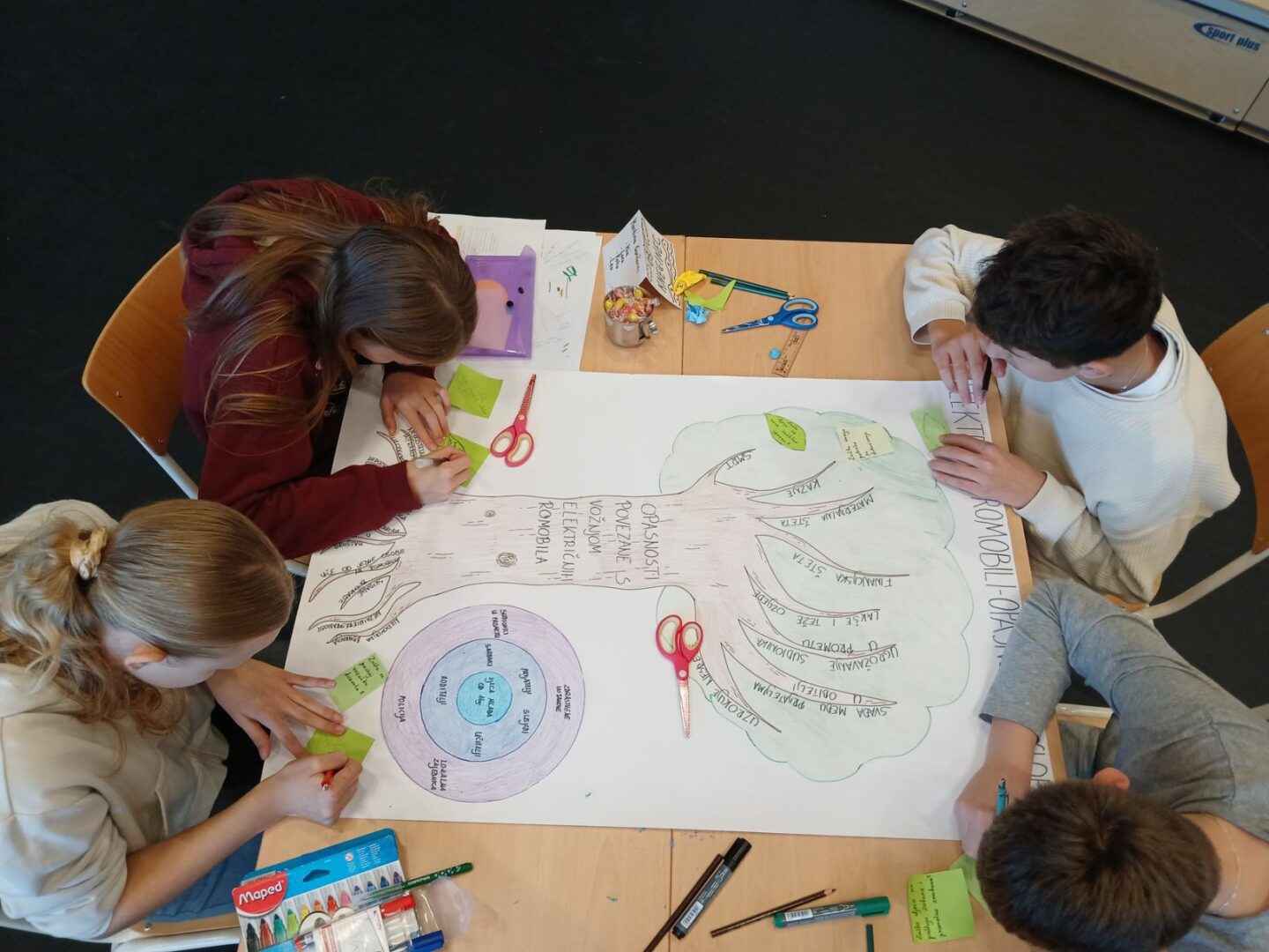 Na Vijeću učenika odabran je problem opasnosti povezanih s vožnjom električnih romobila. Učenici sedmih razreda Leo Magić (7.a), te Lara Bubnjarić, Mia Horvat i Roko Šestak (7.b), uz vodstvo mentorice Martine Goričanac, sudjelovali su na trodnevnoj radionici koja se održala u OŠ „Vladimir Nazor“ Sveti Ilija od 27. do 29. listopada 2025. Tijekom tri dana, učenici su detaljno prolazili kroz UPSHIFT metodologiju pomoću koje su razvijali rješenja za svoj problem te su naposlijetku vrlo uspješno predstavili projekt stručnom žiriju. Za realizaciju svake projektne ideje županija osigurava 1.400 eura za svaki tim.