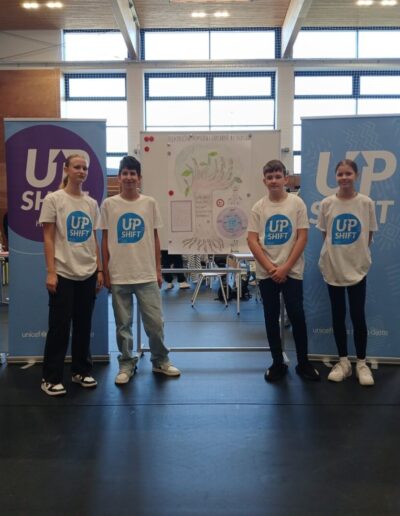 U sklopu programa UPSHIFT, koji UNICEF u Hrvatskoj provodi od 2020. godine, učenici u dobi od 13 do 19 godina uče kako teorijska znanja iz građanskog odgoja primijeniti na stvarne probleme i kako te probleme rješavati. UPSHIFT projekt je UNICEF-ov inovativni program osmišljen kako bi osnažio mlade ljude i pružio im vještine i alate za postajanje nositeljima pozitivnih promjena. Fokusira se na osnaživanje mladih, poduzetništvo i razvoj vještina. Program je implementiran u mnogim zemljama i podržava društvene inovacije te poboljšanje zajednica. Integracija ovog programa u formalno obrazovanje doprinosi: razvoju građanskih kompetencija, osnaživanju djece i mladih kao članova društva koji mogu donijeti pozitivne promjene u društvu, izgradnji atmosfere u kojoj su društvena odgovornost i solidarnost važni te razvoju kreativnosti i inovativnih pristupa rješavanju problema u zajednici.