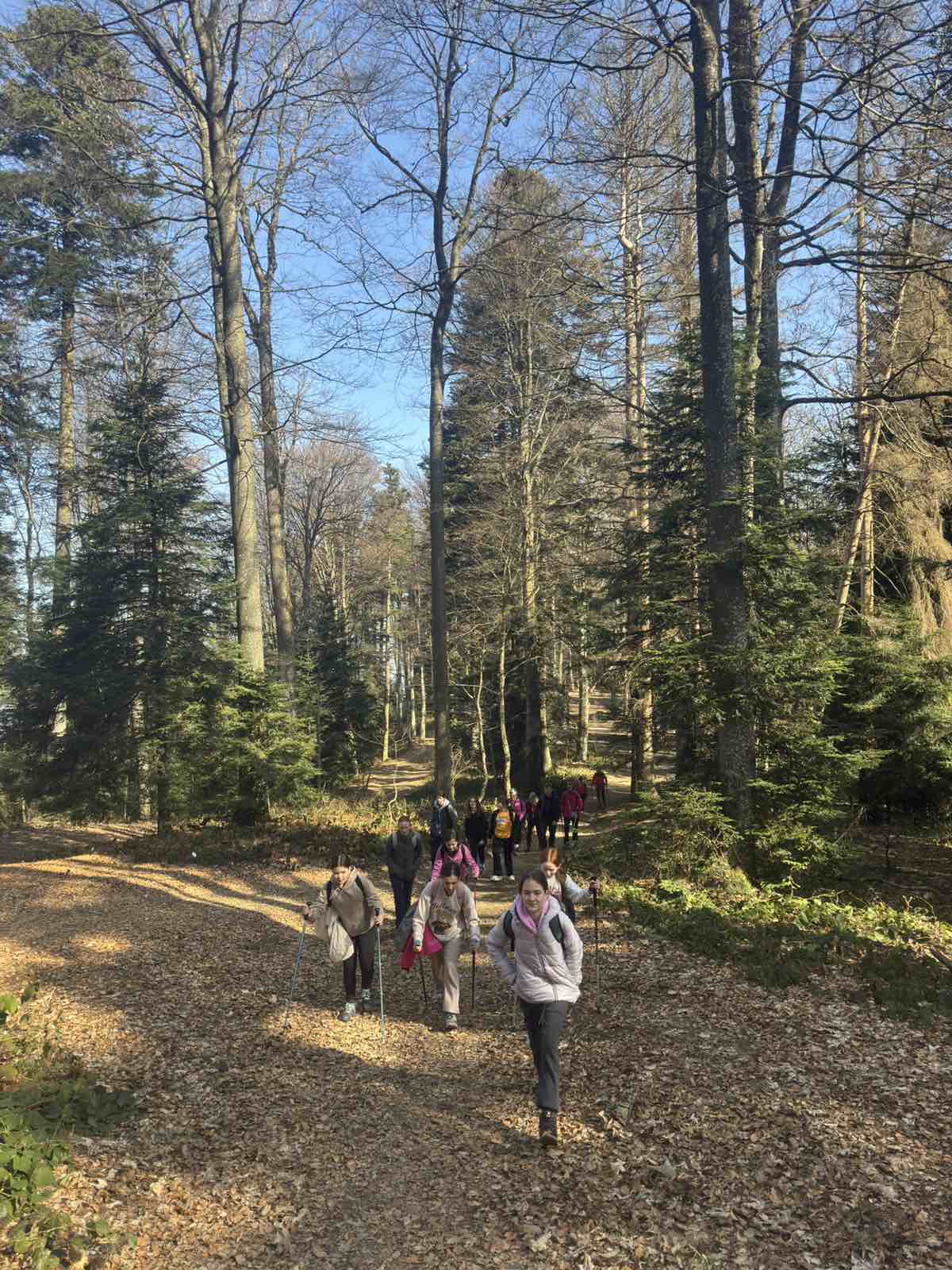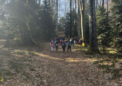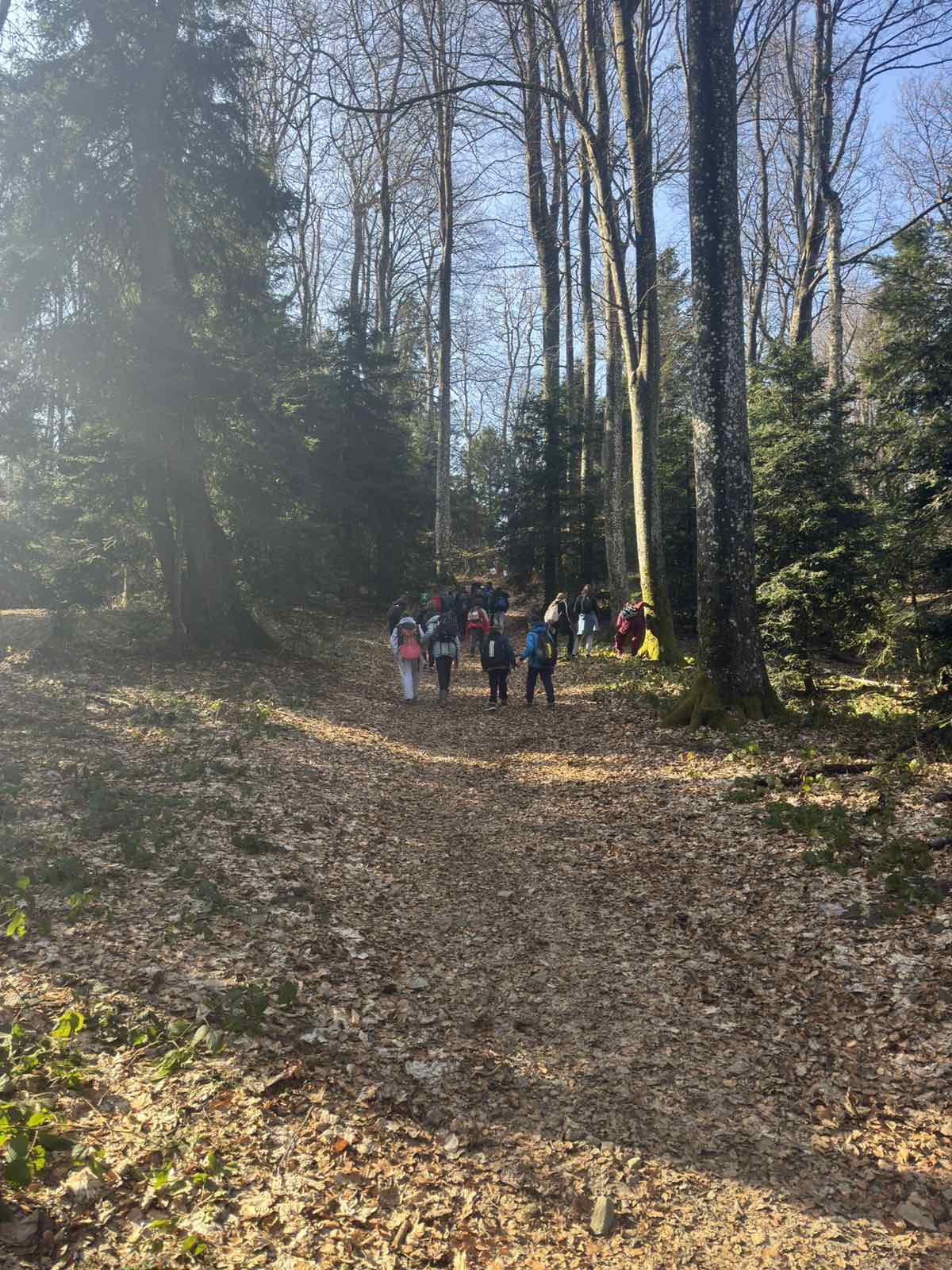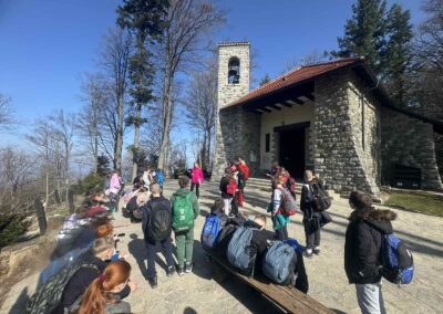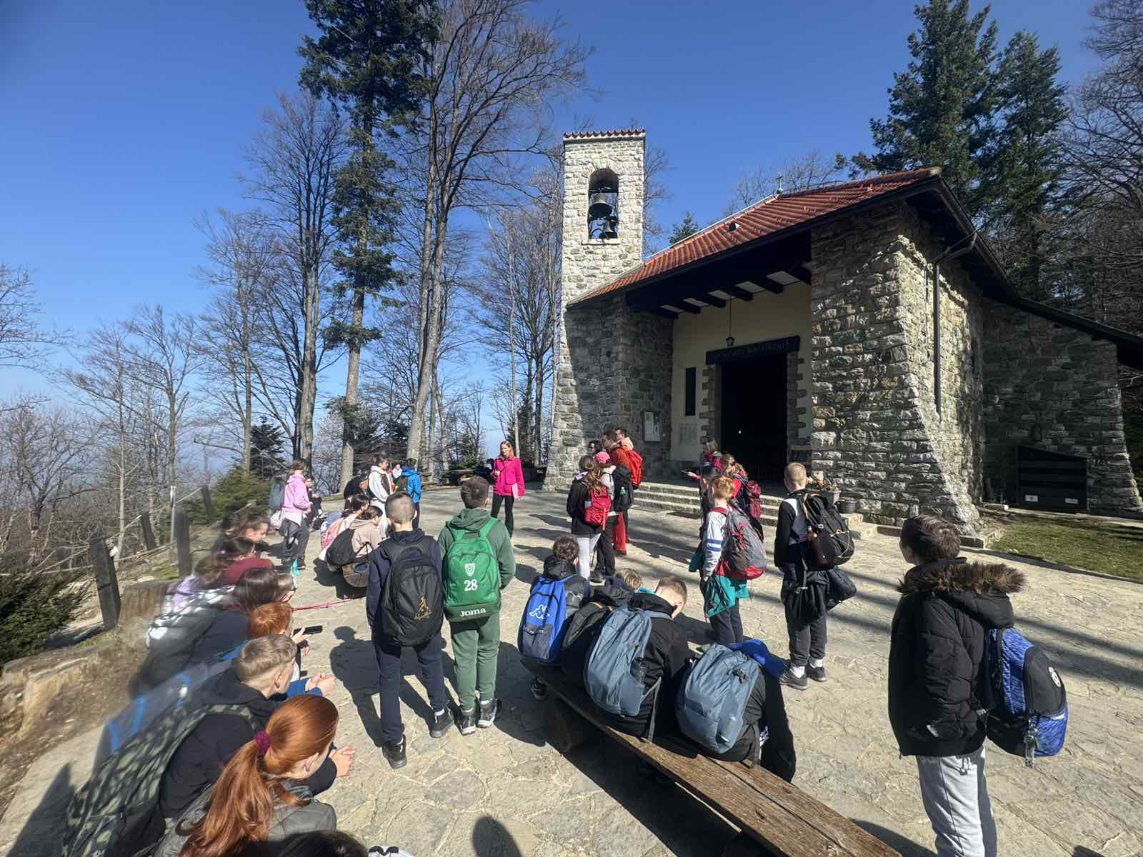 Nakon odmora krenuli smo prema vrhu. Hodali smo oko sat i pol kroz prekrasnu prirodu. Usput smo stali kod Svetišta Majke Božje Sljemenske, gdje smo kratko razgledali i odmorili. Nakon toga popeli smo se do Sljemenskog tornja, gdje smo napravili zajedničke fotografije i još se malo odmorili.