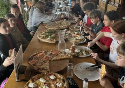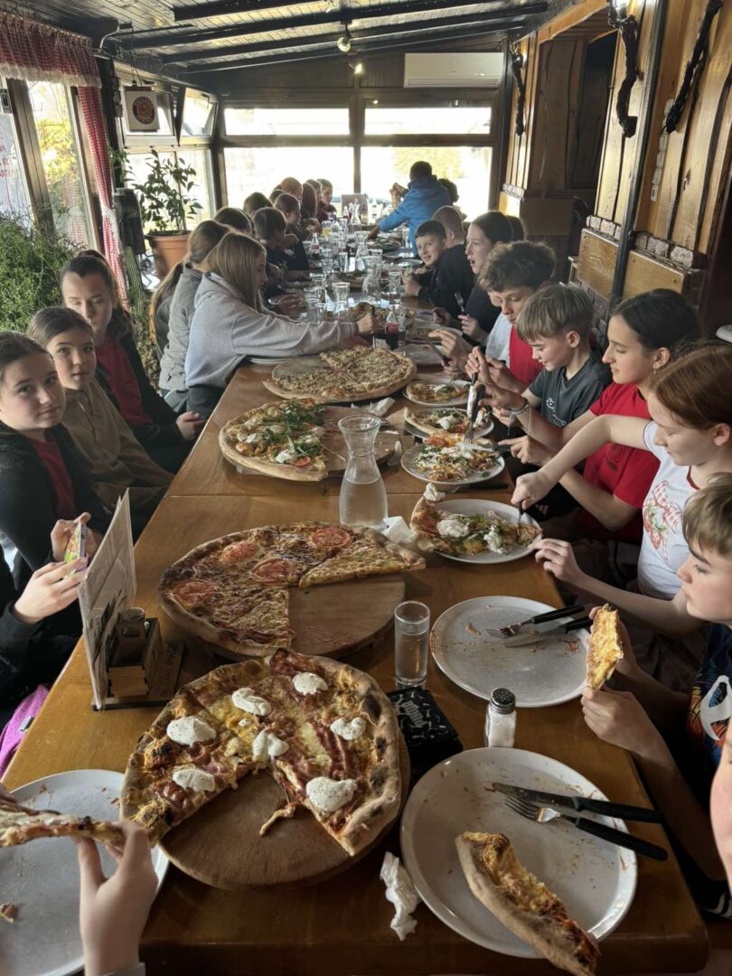 Nakon odmora krenuli smo natrag prema autobusu. Oko 14 sati započeli smo povratak kući. Putem smo stali u pizzeriji Oro Goro, gdje smo pojeli ukusne pizze.