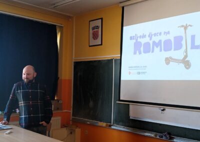 Predavanje je dio projekta „Električni romobili – sloboda ili opasnost“, koji se provodi u sklopu Građanskog odgoja i obrazovanja, s ciljem osvještavanja učenika o sigurnosti u prometu i poticanja na odgovorno donošenje odluka u svakodnevnim situacijama.