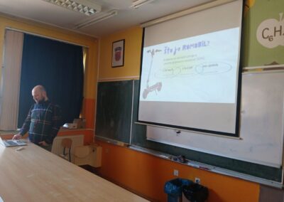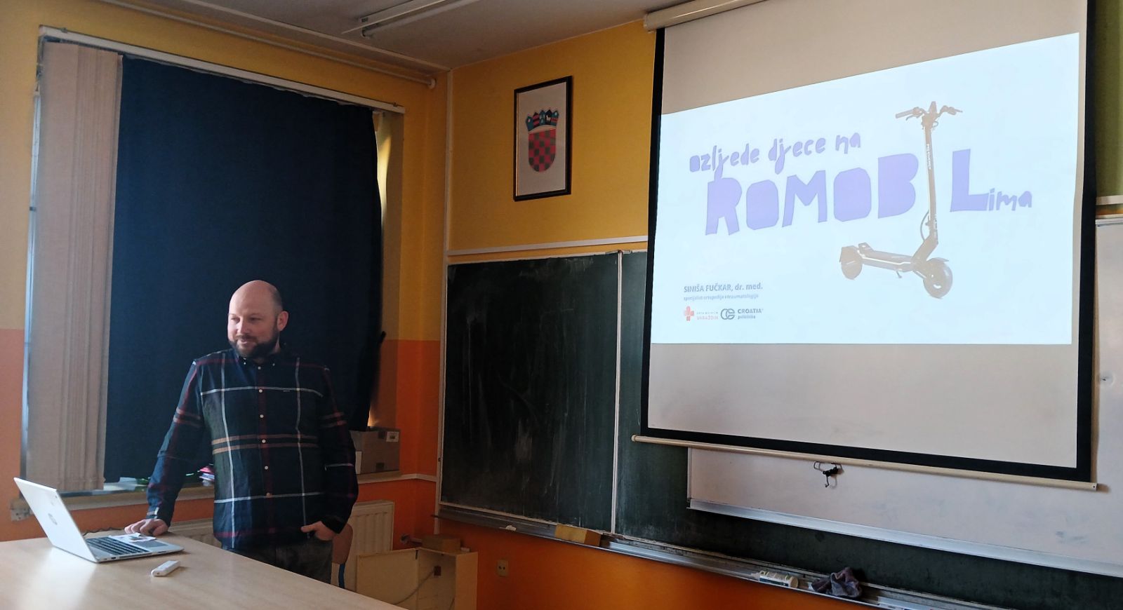 Učenici osmih razreda su u srijedu, 25. ožujka 2026., sudjelovali na zanimljivom i edukativnom predavanju o ozljedama uzrokovanima vožnjom električnih romobila. Predavanje je održao gospodin Siniša Fučkar, specijalist traumatologije i ortopedije u Općoj bolnici Varaždin.