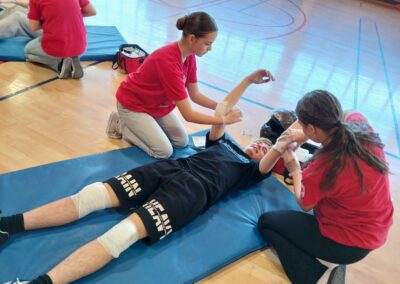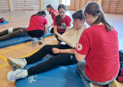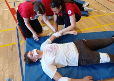 Tijekom vježbe prikazane su najčešće ozljede poput potresa mozga, ozljeda koljena i laktova, podlaktice i potkoljenice, kao i ozljeda dlanova. Posebna pažnja posvećena je i stanju šoka, odnosno hiperventilacije, koje se može javiti nakon nezgode. Učenici su imali priliku vidjeti kako prepoznati simptome te na koji način pravilno pružiti prvu pomoć do dolaska stručnih službi.