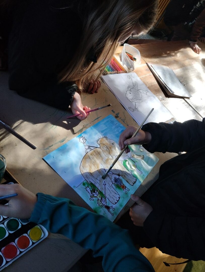 Prvi dio terenske nastave odvijao se na području arheološkog nalazišta špilje Vindija, u suradnji s OŠ Andrije Kačića Miošića iz Donje Voće. Na samom odredištu dočekali su nas domaćini – učenici osmih razreda i njihova učiteljica povijesti, gospođa Vlatka Majcen. Nakon kratkog i zanimljivog izlaganja o samoj špilji i otkrićima vezanima uz život neandertalaca, učenici su se podijelili u deset skupina te su započele radionice posvećene životu ljudi iz kamenog doba.