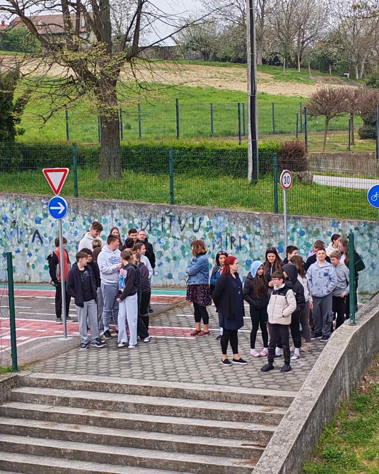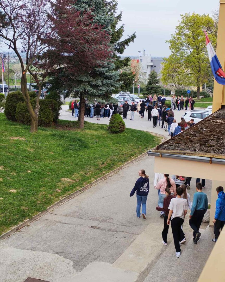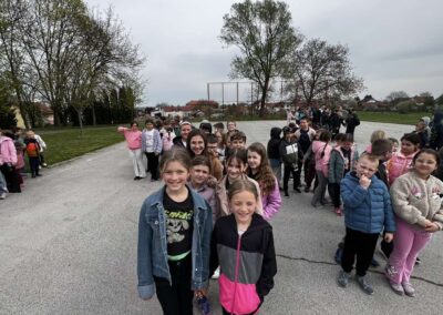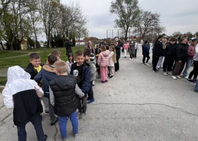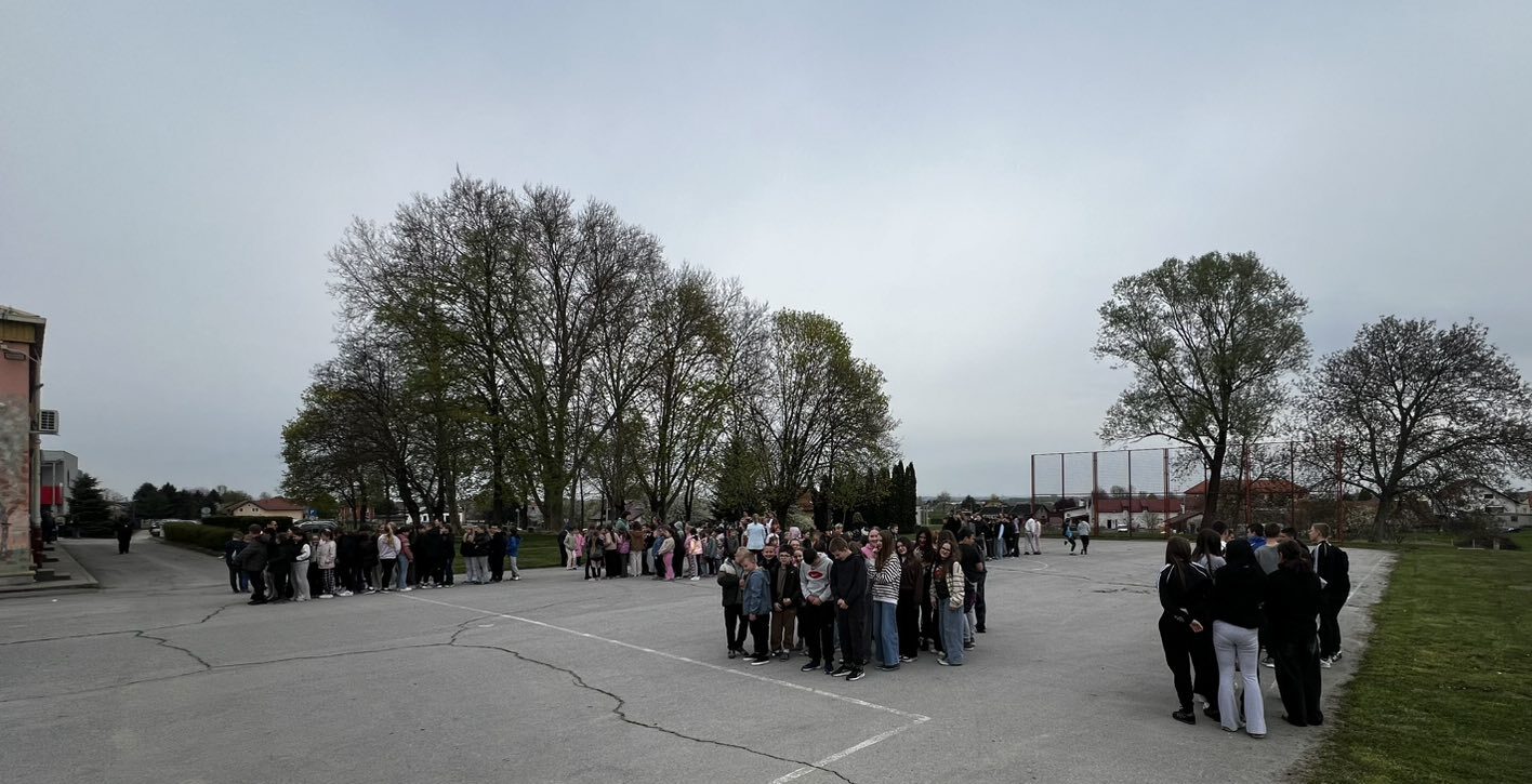 Nakon zvučnog signala za opasnost, učenici su pod vodstvom svojih učitelja, poštujući sve sigurnosne protokole, smireno i u rekordnom roku napustili učionice te se uputili prema predviđenom zbornom mjestu u školskom dvorištu.