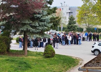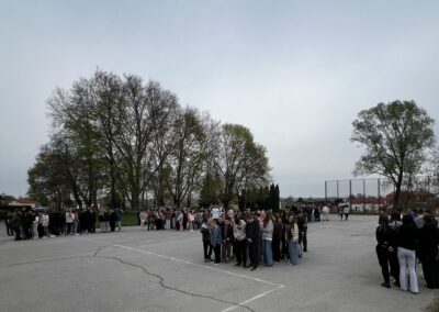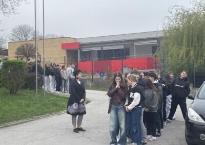 Danas je u našoj školi uspješno provedena planirana vježba evakuacije u slučaju potresa. Cilj ove vježbe bio je provjeriti spremnost učenika i djelatnika na brzo i sigurno napuštanje školske zgrade u izvanrednim situacijama.