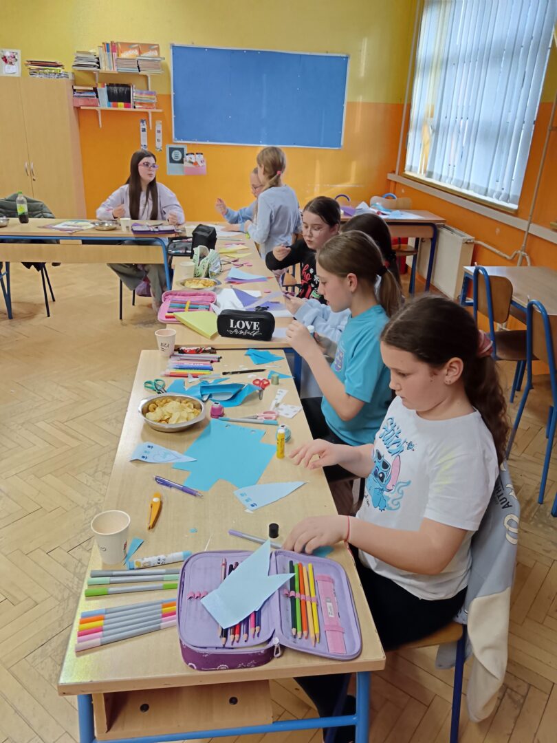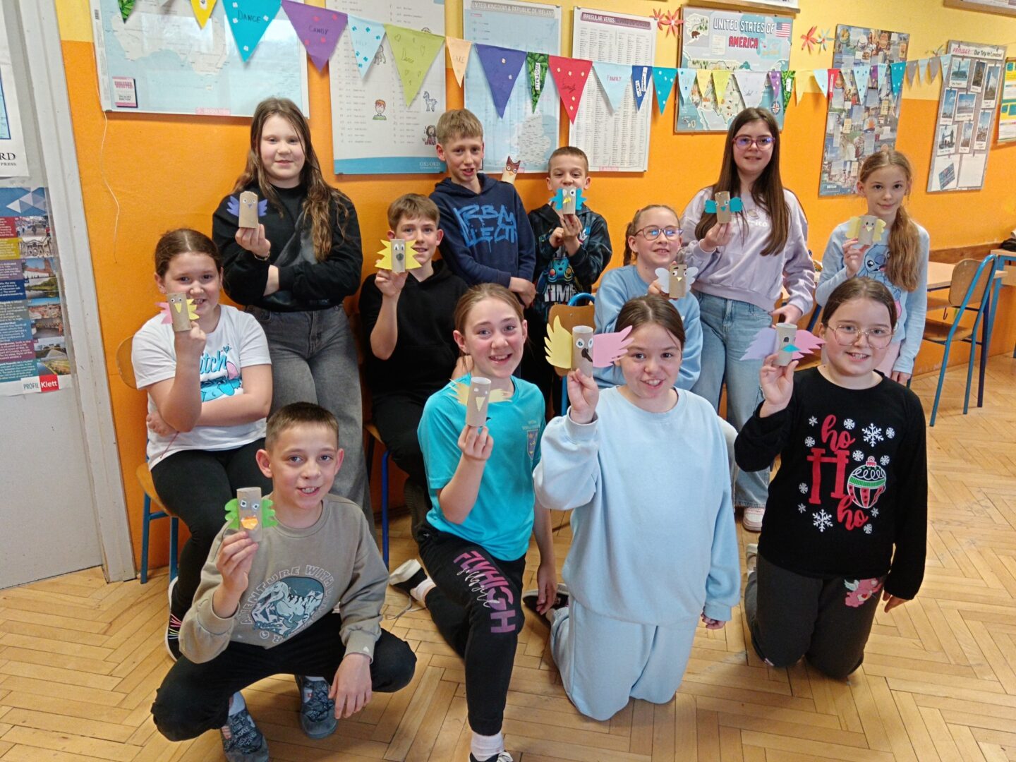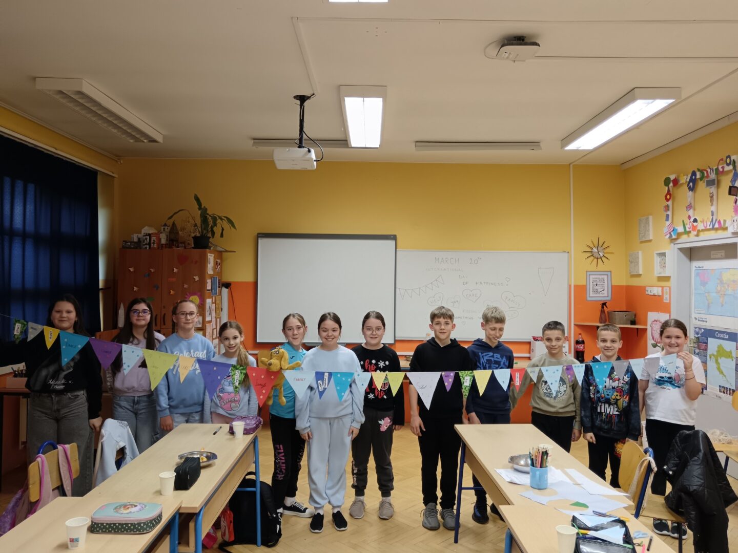 Učenici napredne grupe razvijanja čitalačkih sposobnosti „Reading is fun“ to znaju, a znaju i kako ga obilježiti. Nije nam bilo teško doći u petak, nakon nastave i na zabavnim radionicama potaknuti hormone sreće na akciju. Pričali smo o svemu što nas veseli i kako se osjećamo kad nekoga usrećimo i dijelimo radost. Izradili smo veliki lanac sreće na koji smo na engleskom jeziku upisali pojmove za sve ono što je za nas sreća. Čitali smo priču o tome kako je važno pomoći nekome u nevolji i što to čini nama… koliko smo zadovoljniji, veseliji i ispunjeni. Ali ni to nije sve…imamo zadatak, dobili smo tajnog prijatelja za kojeg moramo učiniti neko dobro djelo, roka nema, samo ćemo reći što i kada smo to napravili. Kako je proljeće pokucalo na vrata, a time i lijepo vrijeme, boravak u prirodi nam se čini kao pravi izbor kako bi smo uživali u mirisima cvijeća i cvrkutu ptica….no i mi smo izradili svoje ptičice od recikliranog papira, takve će nas podsjetiti i u našim sobama na sreću i veselje koje one daju nama.